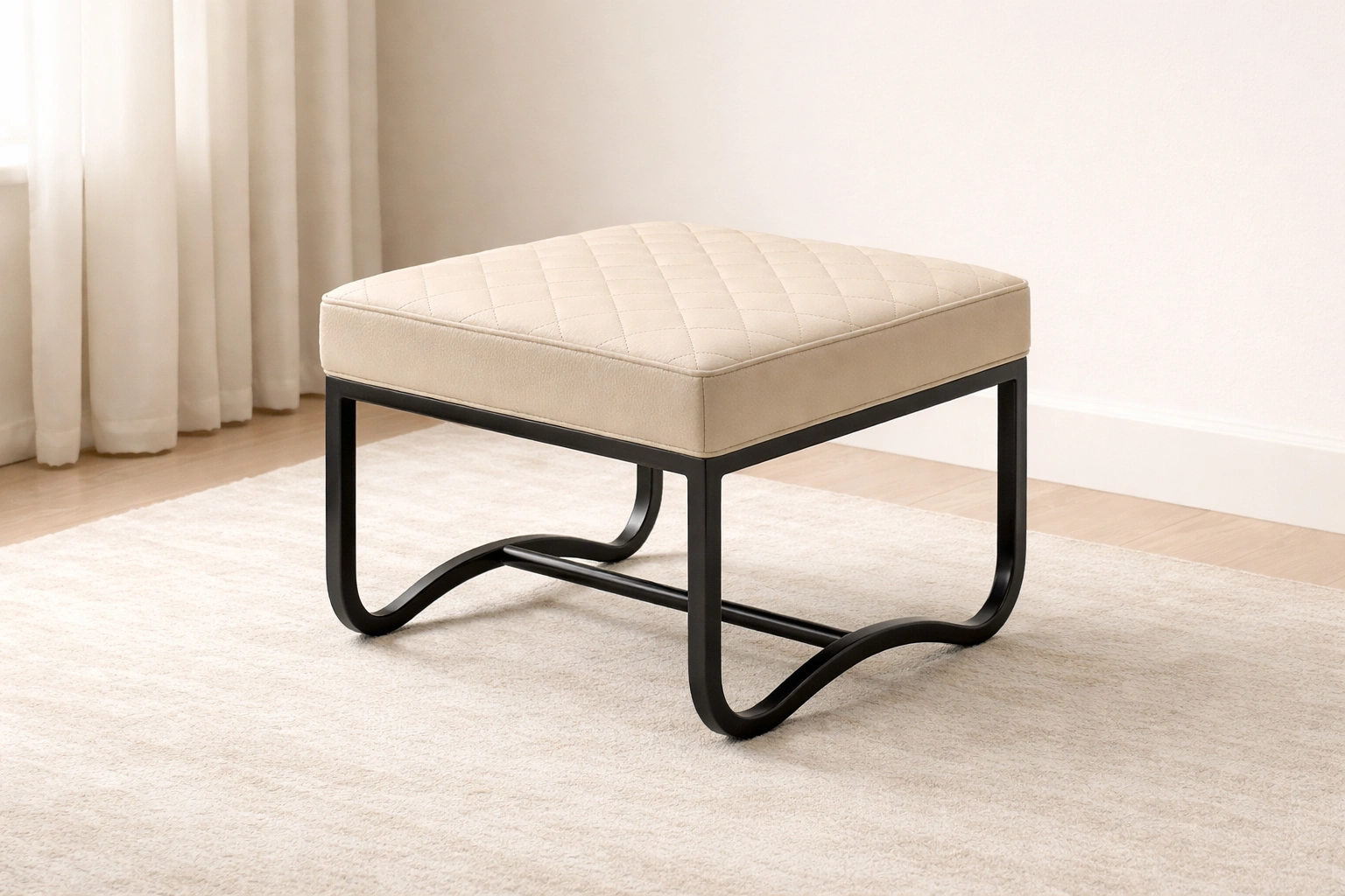 Banco de almacenamiento Tapizado en Lino Beige con Patas de Madera