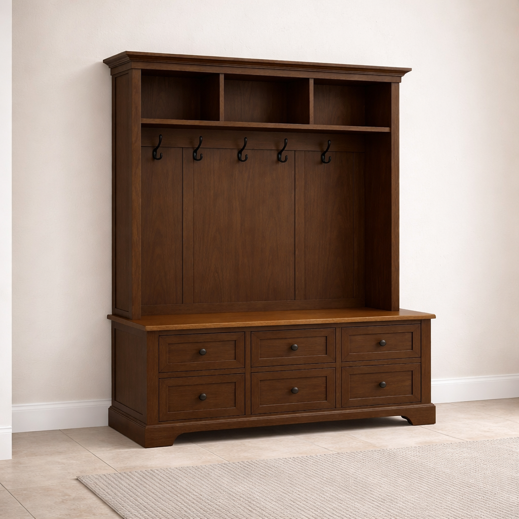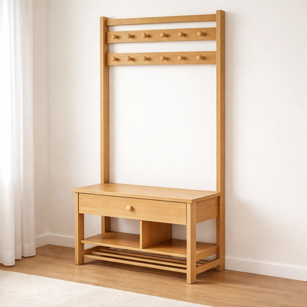 Banco de almacenamiento con Cajones de Madera y Asiento de Tela Beige