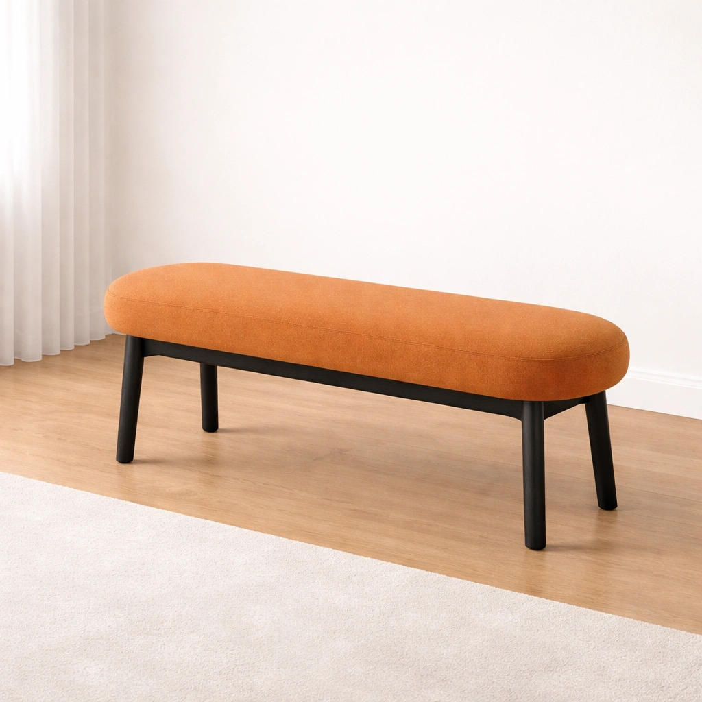 Banco Tapizado Tejido Poliéster Naranja con Estructura de Madera Maciza